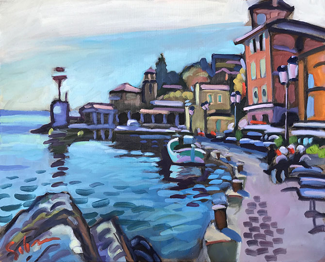 Title: Villefranche Waterfront 2017 Medium: Oil on Linen, Size: 28" x 22" Price: $3,200 ( I am interested! )