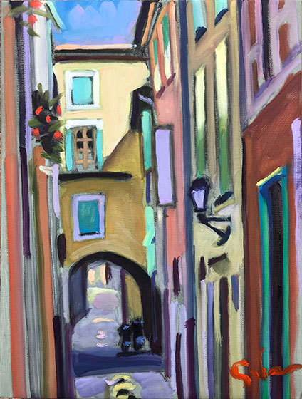 Title: Rue du Poilu, Villefranche-sur-Mer Medium: Oil on Linen, Size: 12" x 16'' Price: $1,800 ( I am interested! )
