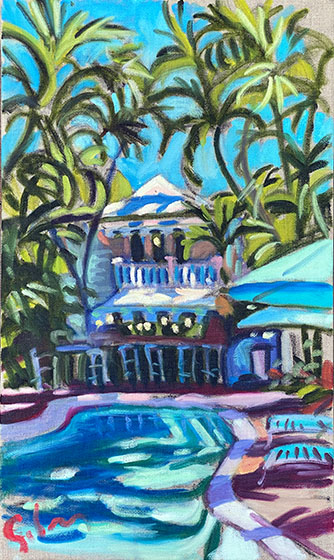 Title: Bar at the Pool Medium: Oil on Linen, Size: 12" x 20" Price: $2,000 ( I am interested! )