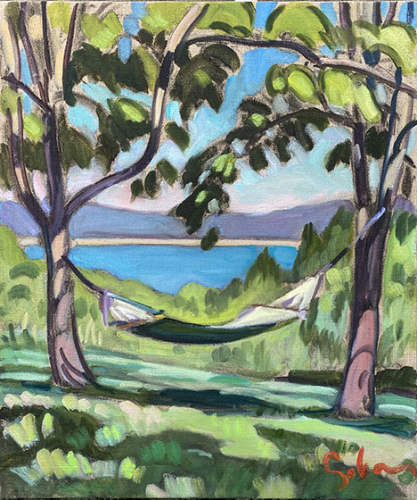 Title: Hammock over Good Harbor Bay Medium: Oil on linen, Size: 20" x 24" Price: $2,800 ( I am interested! )