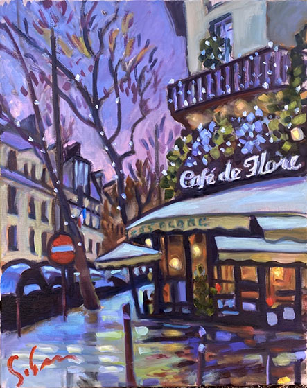 Title: Café de Flore, Christmas Medium: Oil on Linen, Size: 24" x 30" Price: $3,600 ( I am interested! )